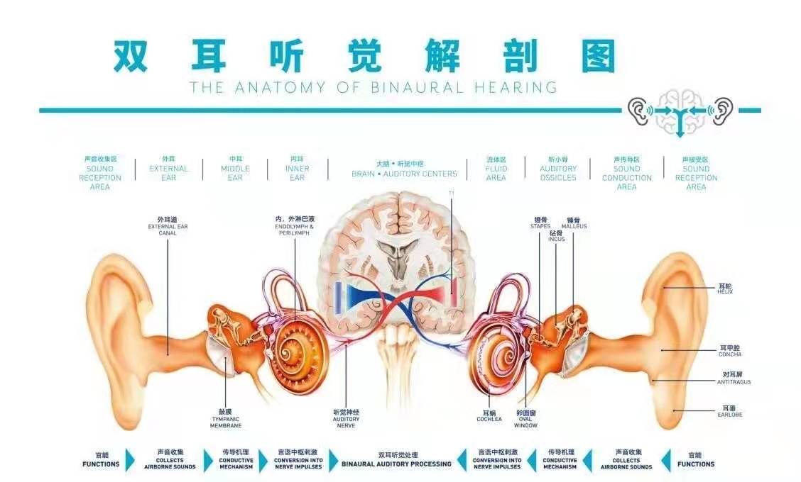 声音经外耳、中耳传入内耳耳蜗,耳蜗毛状细胞将声波震动变为电脉冲,经听神经纤维传入大脑,于是我们就听到了声音。这条听觉传导路径上,任一环节出现病变都会引起不同性质的耳聋。