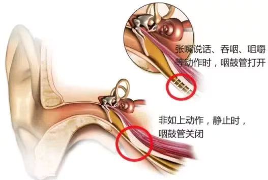 通过说话、吞咽、咀嚼等动作可以让咽鼓管打开,让外部空气进入耳朵,使得内外压平衡,改善鼓膜凹陷或外凸带来的耳朵闷堵或耳痛。