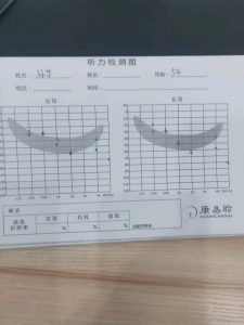 电耳镜观察双耳鼓膜形状良好,可见光锥明显,纯音测听双耳中度神经性听力损失,根据听力图跟他分析了在具体生活环境中会遇到的听力问题,比如安静环境听的清楚,吵一点的环境就听不清了,他表示赞同,最后给他试听了唯听助听器智擎系列PA-110双耳一对,经过精细助听器调试,效果反应很好,女孩子远距离的小声说话能听得并挺清楚的,验配中心外的马路上聆听言语声也很轻松,而且助听器不吵,音质听得很舒服,比试听海之声的机器效果要好很多,最后孙叔叔选择佩戴智擎PA110一对。