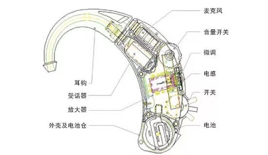 助听器品类繁多,但所有电子助听器的工作原理是一样的。助听器一般都包括6个基本结构。