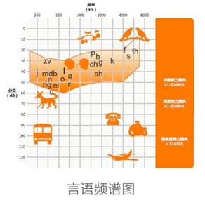 汉语字音可以分成声母、韵母、字调三部分,其中将近有30%左右的声母分布在20-30dBHL左右的区间内(见言语频谱图)。