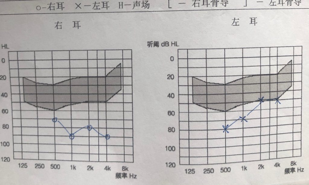 易声听力服务中心工作人员为灿灿做了全面的听力检查,灿灿很配合,经过检查,右耳平均听力损失为83dB HL,左耳平均听力损失为63dB HL,属于重度听力损失。