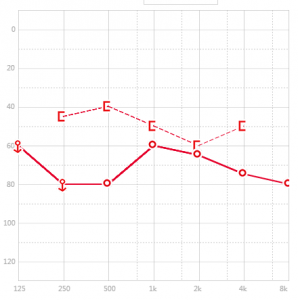 在医院检查过听力的都知道,测听时我们听到的声音是从125HZ到8000HZ,这是人类语言频谱区,分低频,中频,高频,那么听力下降的人群,他的听力图下降也是有曲线的,所以听力下降的不同对于选配助听器也是不同,助听器也是分为两大类: