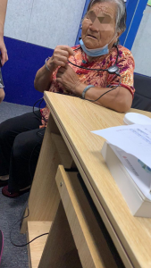 通过跟家属的沟通,工作人员了解到老人家平时都不怎么舍得花钱,所以来配机的时候都还一直念叨以前的助听器还能用,老人家目前长期住在女儿家里,老人表示只要待家里能听得好,不要一直喊着对话就很满足了。