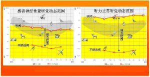从刚好能引起人听觉反应的OdBHL算起,到最大极限的120dB都是我们能听的范围,术语上称为“听觉动态范围”。如果存在听力损失(耳背),刚刚能听到的声音就不会是OdBHL,而可能是30dB、60dB、70dBHL甚至更多。假设一个聋人的平均听力损失 (PTA)6OdBHL (这意味着60dBHL是他刚刚能听到的声音,感觉上相当于正常的听阀:OdBHL),又假设他也有12OdB的听觉动态范围,则该聋人似乎能忍受180dBHL左右的声音。实际上,不仅没有人能忍受,自然界中也根本不存在如此巨大的声音。第二条假设是完全错误的。