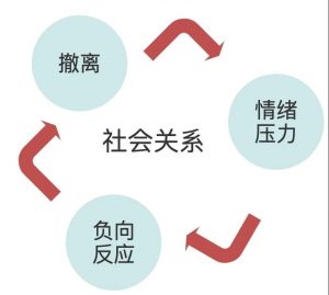 人与人之间的互动行为,很多情况下都会影响一个人的患病率、死亡率和身体的良好运作。一个老人如果可以有五个或以上的人作陪伴,就比较不会寂寞和抑郁。举个例子,如果老人身旁有儿女子孙的陪伴,并且在社区里踊跃活动,那么他的心理可能会很健康,参与听力康复的动机也相较于缺少陪伴和社交活动的人更强。社会接触让一个人可以体验更多的生活,参与更多的社会活动,就会有更多的动机去解决听力损失带来的问题。如下图所示,一个人如有可交谈的对象,就会有寻求听力康复服务的动机。