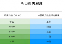 听力损失程度分为以下几类: 正常听力:-10~25分贝 对一般的声音及语言分析清楚。 轻度听力损失:26~40分贝 对细小的声音难以分辨,如树林风吹声。 中度听力损…
