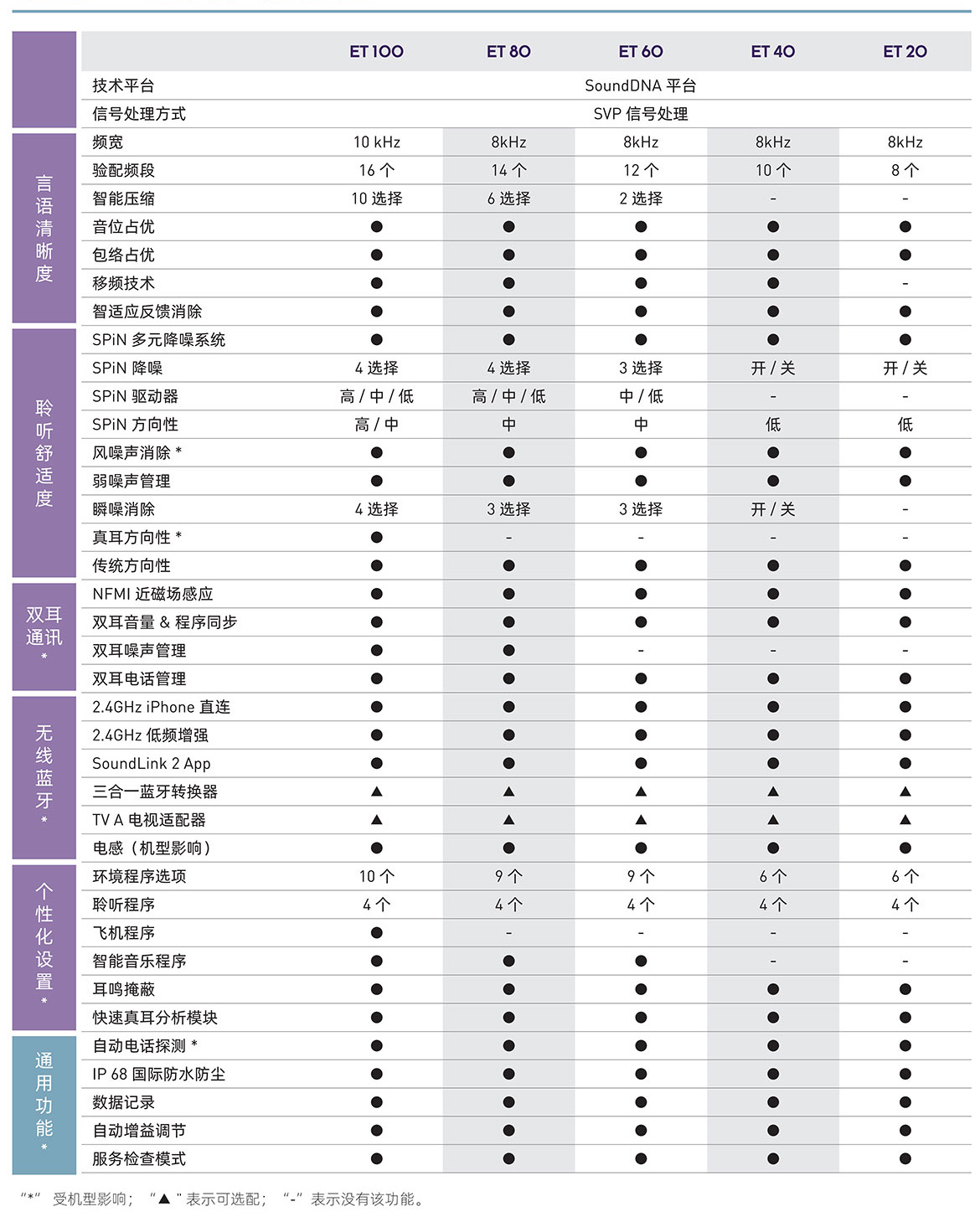响泉 ET系列助听器涵盖从100到20等多种级别和型号,为用户提供更全面的性能选择,确保用户可以根据自己的需求和预算选择适合的助听器。